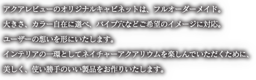 アクアレビューのオリジナルキャビネットは、フルオーダーメイド。