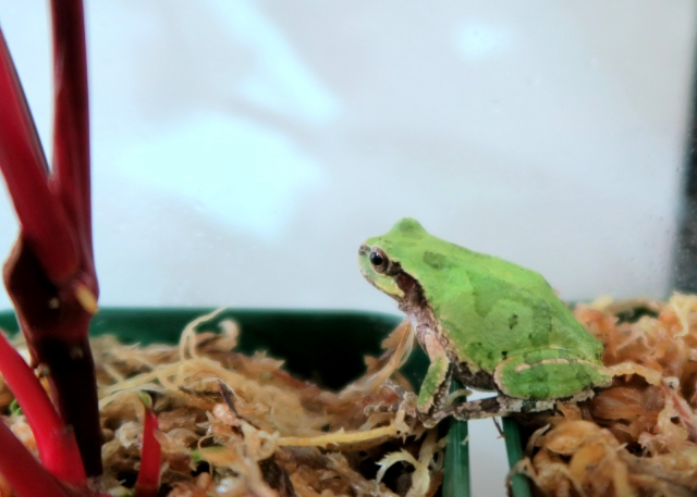 季節も移り変わり”五月晴れ”が続き過ごしやすい日々を迎えておりますが、昨晩閉店時に水槽にへばり付く小さな影を発見しました。よく目を凝らし見るとアマ蛙でした。節目の時など何故か偶然ですが、先回も新潟にお邪魔した際に田んぼの畦道を散歩していたら足元にいた事を思いだしました。また今回も当店の展示水景を掲載した雑誌が発売する前日に巡り合えた事に、昔ADA社のカタログの表紙を飾っていた「アカメヒキガエル」を思いだし